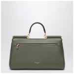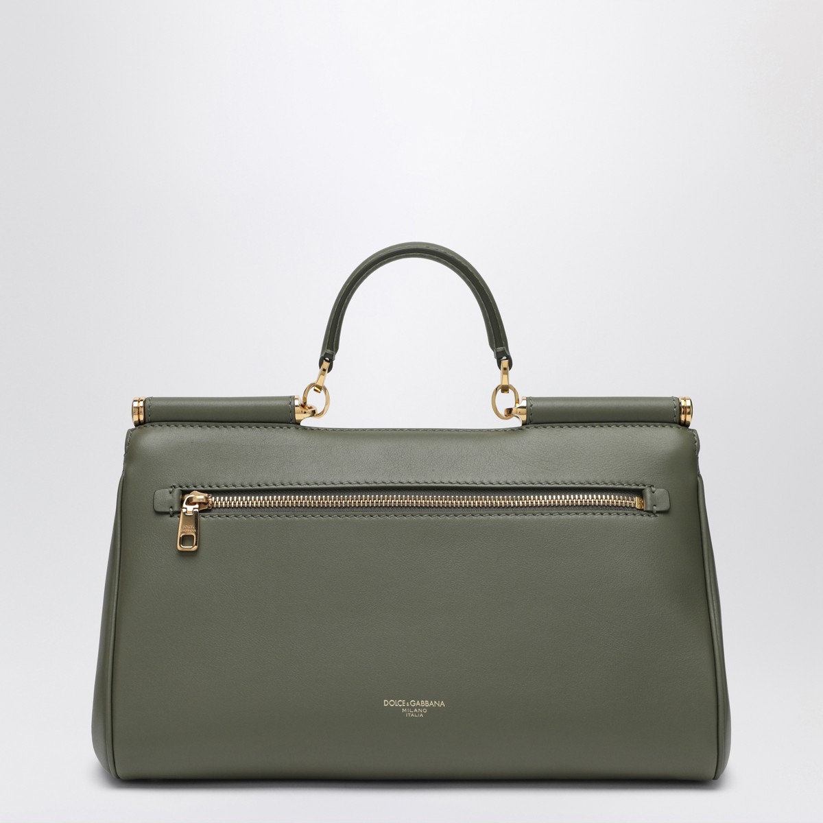 Handbag by Dolce & Gabbana in military green grained leather, featuring a front flap with logo plate, handle, adjustable and removable shoulder strap, one internal zip pocket, one internal mobile pocket, printed fabric lining, metal feet and gold-tone hardware.