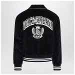 Dolce & Gabbana dark blue corduroy bomber, featuring a shirt collar, front button placket, welt side pockets, logo on chest and back, ribbed cuffs and hem.