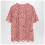Dolce & Gabbana stretch floral lace T-shirt in powder pink, featuring a ribbed round neckline, short sleeves, a wavy hem, and a regular fit.