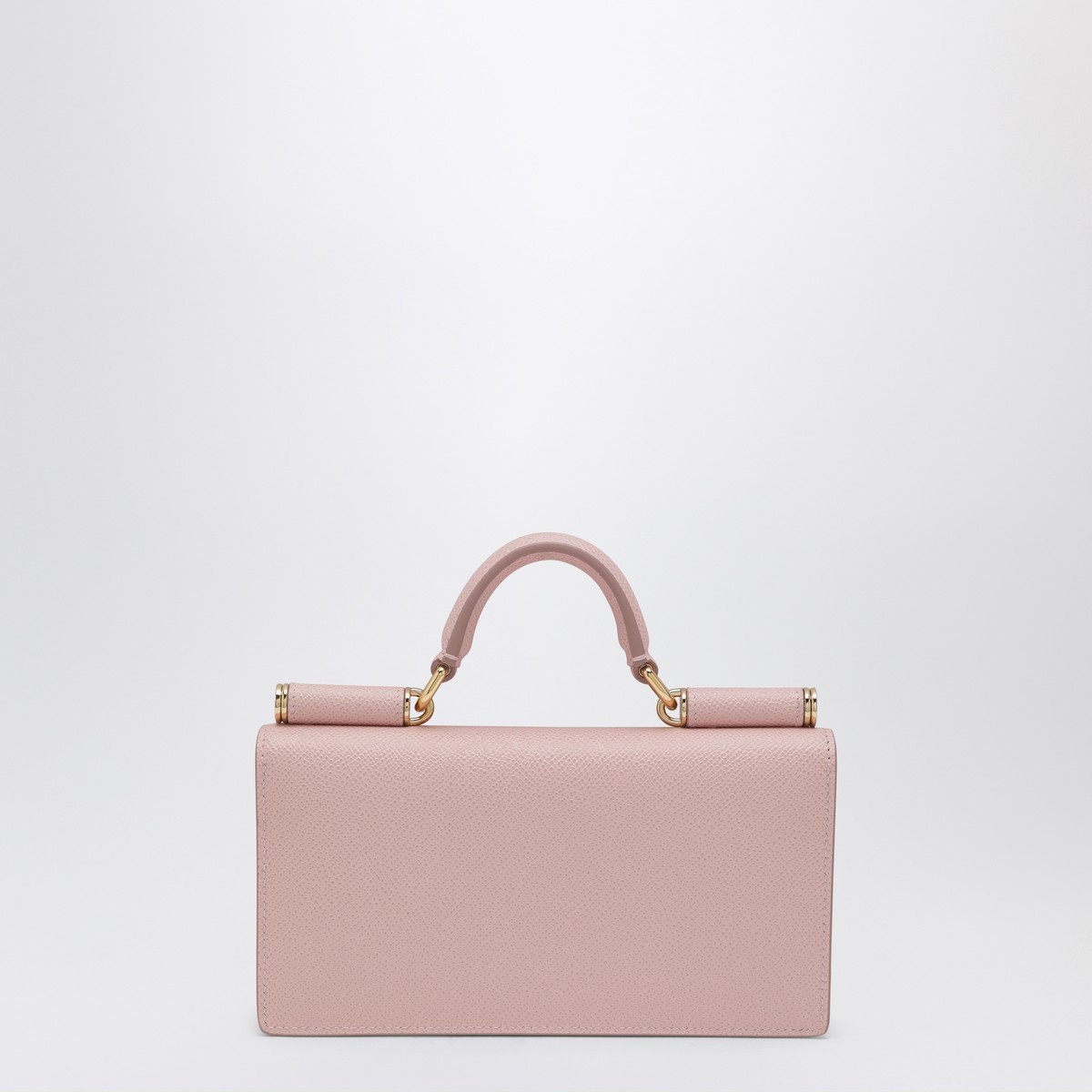 Dolce & Gabbana mini bag in pink Dauphine calfskin leather, featuring a front flap with hidden magnetic closure, logo-embossed plaque on the front, top handle, removable chain shoulder strap, viscose lining, one internal zip pocket, and four credit card slots.