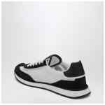 Dolce & Gabbana sneakers with white and black suede and fabric upper, featuring interlocking DG logo on the side, lace-up closure, logo patch on the tongue, embossed heel logo lettering, and rubber sole.