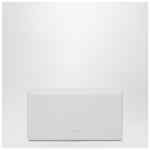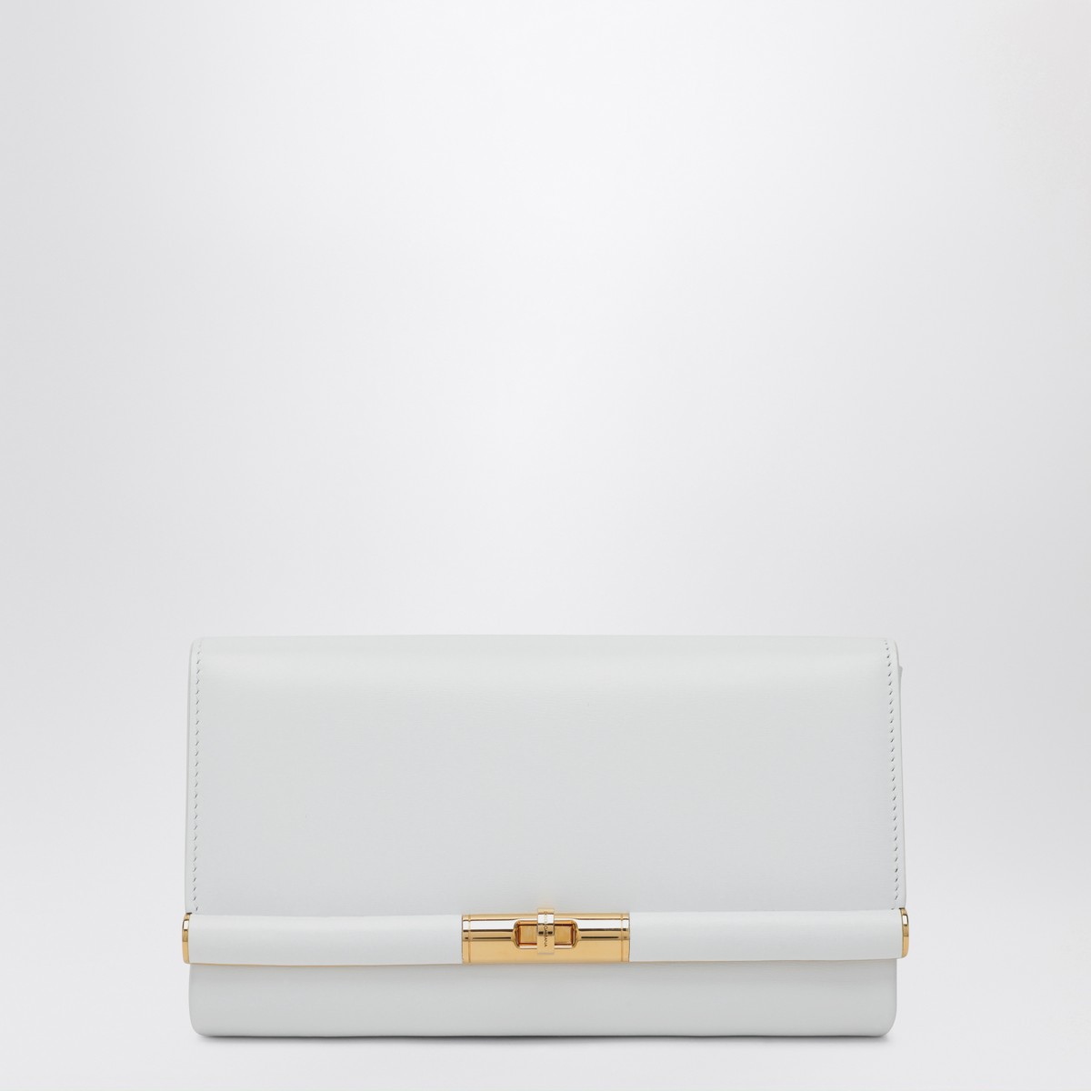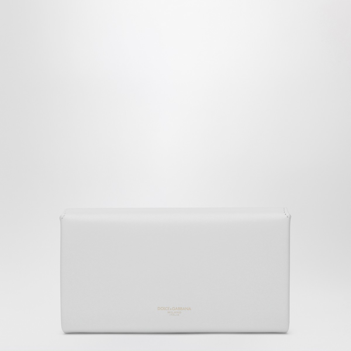 White calfskin shoulder bag by Dolce & Gabbana, featuring an adjustable and removable shoulder strap, a front flap with a gold metal turn-lock closure, one main compartment, and two internal flat pockets.