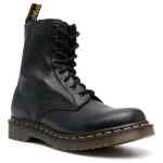 Pascal Virginia lace-up boots from DR. MARTENS featuring contrast stitching, logo pull-tab at the heel, front lace-up fastening, round toe, flat rubber sole, black and calf leather. 1460 Pascal boots