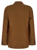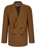 ‘barry’ double-breasted blazer in wool and viscose blend with pinstripe pattern, Front button closure, Peak lapels, Breast pocket, Flap pockets, Structured shoulder strap, Cuffs with open buttonholes, Back slits, Inner pocket, Viscose lining. Size and Fit – oversize fit – FRENCH size