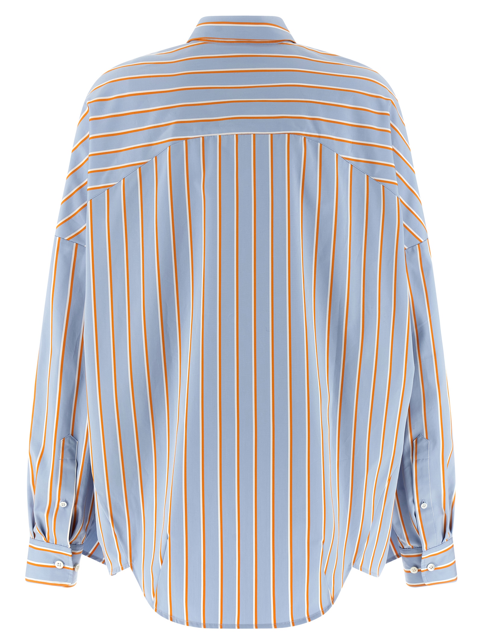 ‘casia’ striped cotton shirt with front button closure, Long sleeves with cuffs and dropped shoulders, Asymmetrical hem.