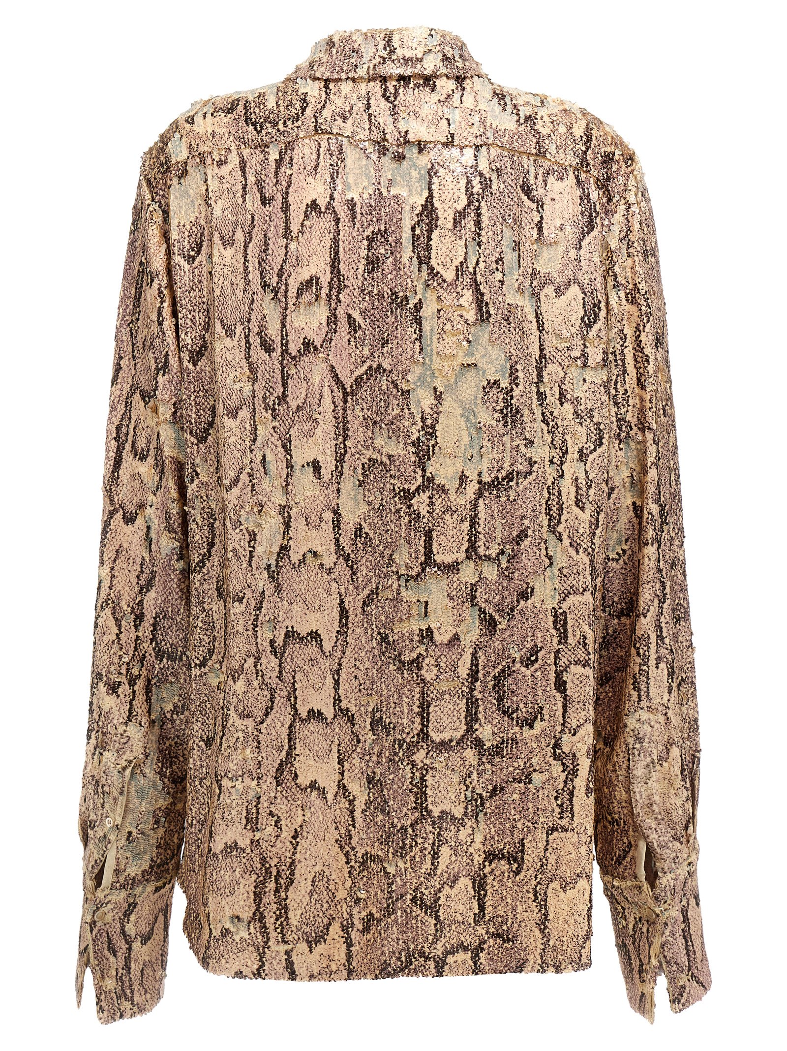 ‘Celina Bis’ viscose shirt embroidered with snake print sequins, button closure, long sleeves with ruffle cuffs and a cufflink loop.