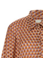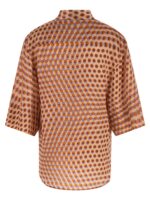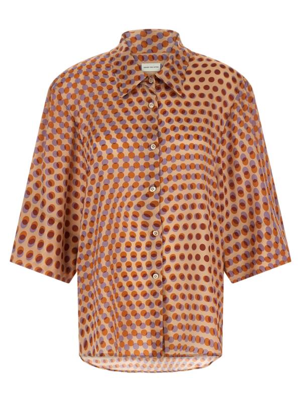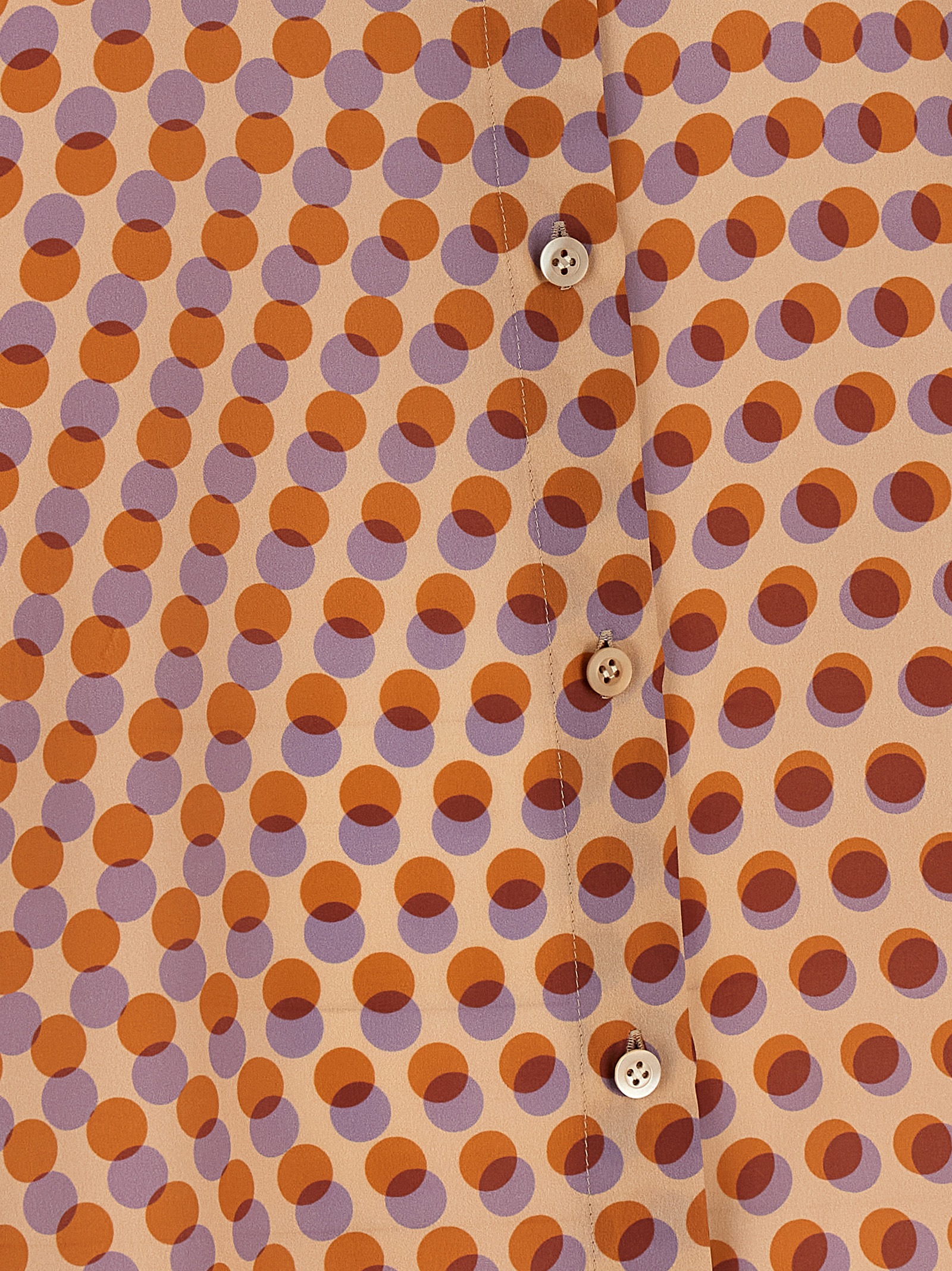 ‘clea’ shirt in silk twill with all-over polka dot pattern, Pointed collar, Front button closure, Wide short sleeves with dropped shoulders, Rounded hem. Size and Fit – Oversize fit – french size