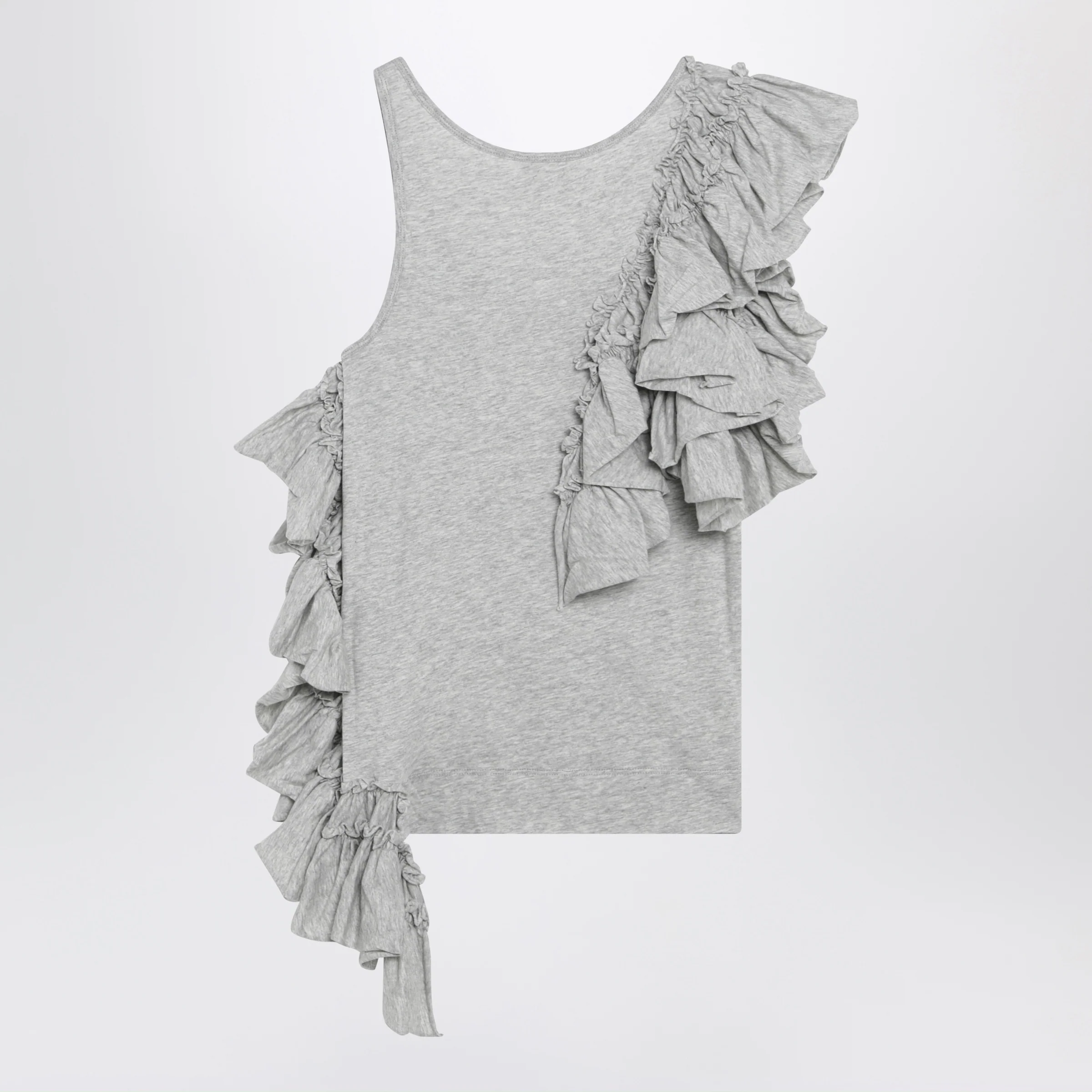 Dries Van Noten Grey mélange tank top with ruffles