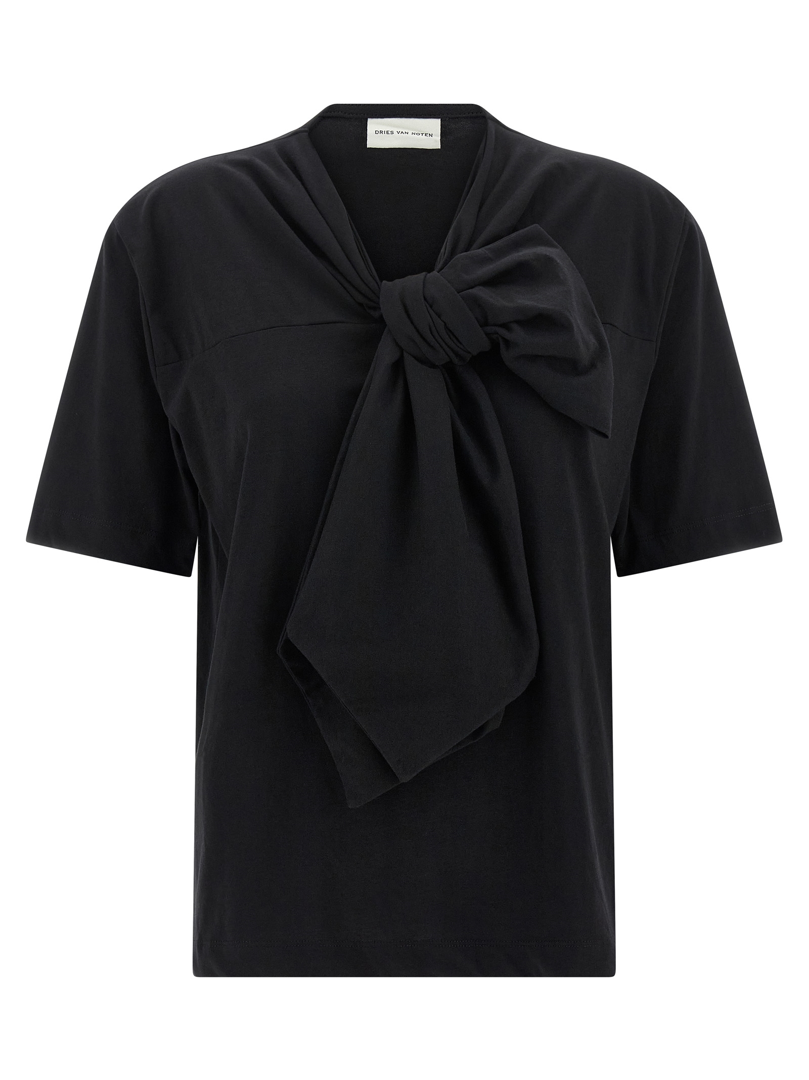 ‘Hebitta’ cotton T-shirt with lavallière collar and short sleeves.