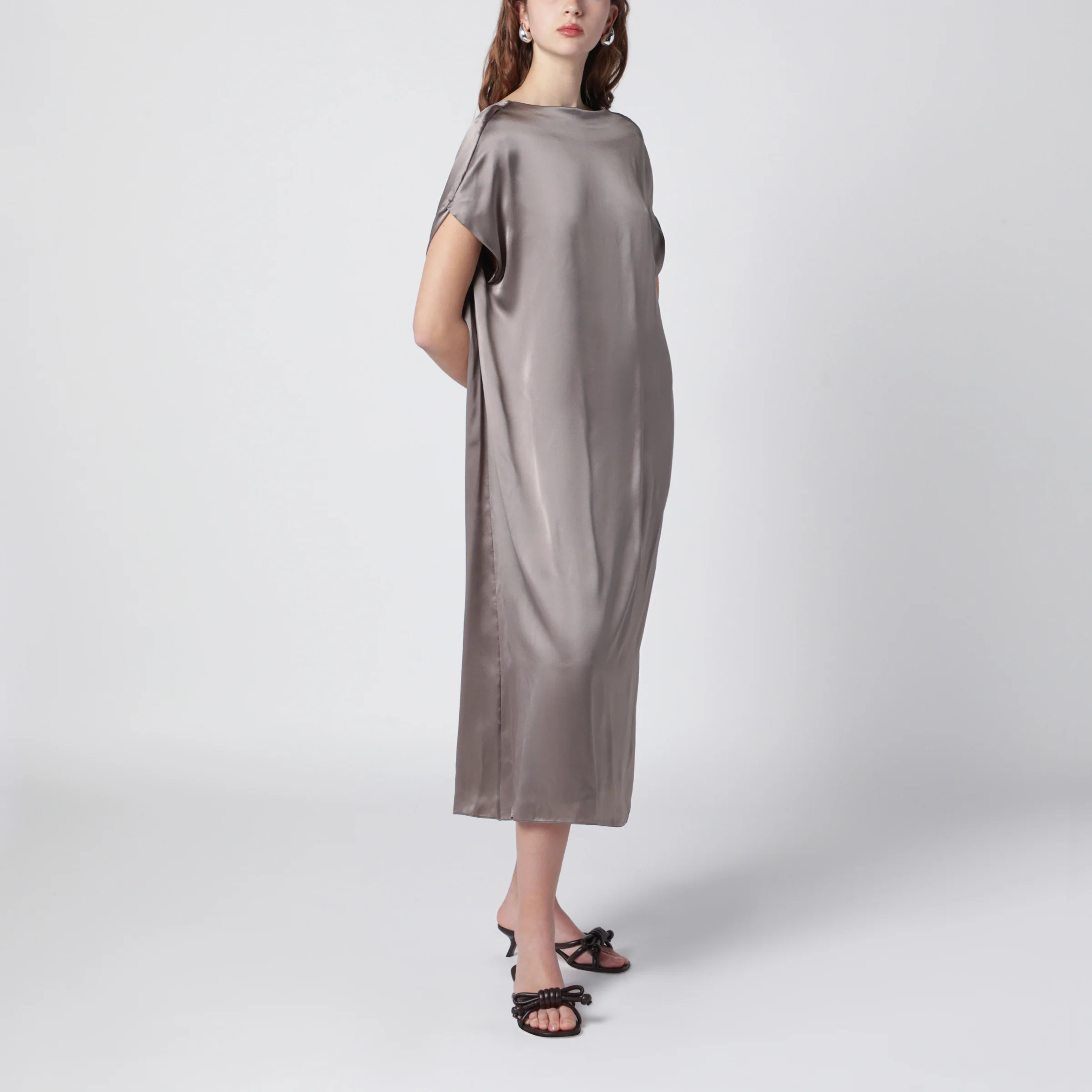 Dries Van Noten Taupe silk satin midi dress