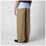 Dries Van Noten beige cotton trousers with contrasting light blue striped top panel, featuring elasticated waist, wide fit, straight leg, two rear welt pockets and two side pockets.