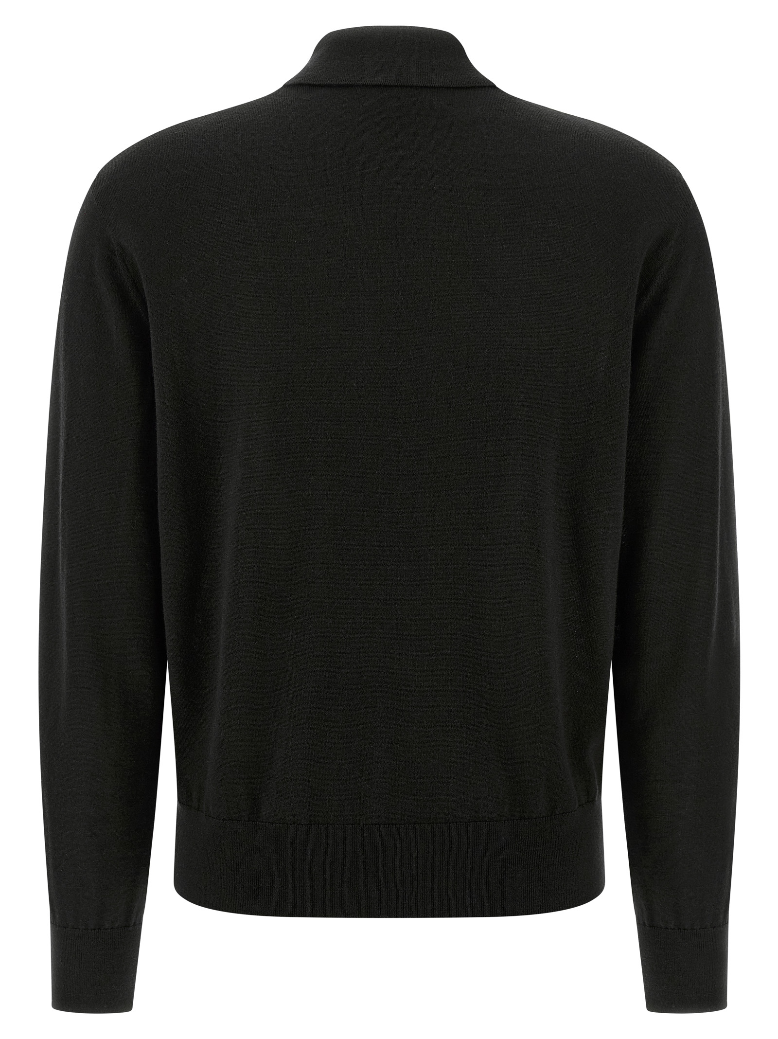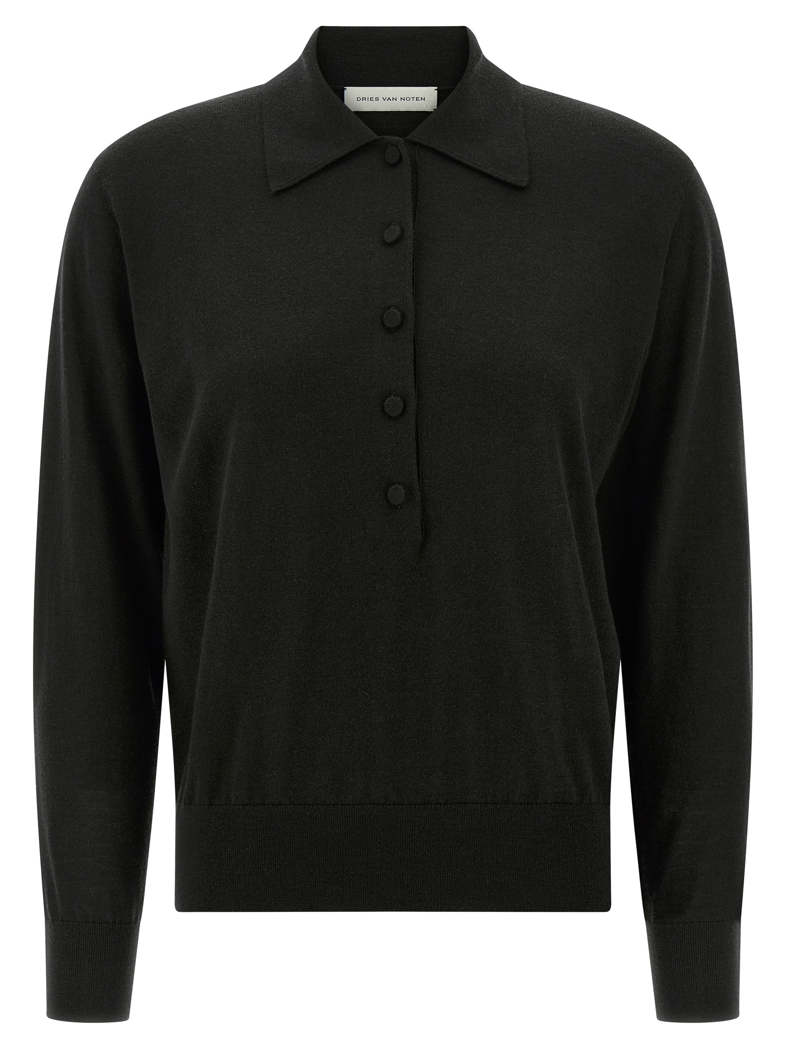 ‘Tuno’ polo shirt in light merino wool with collar and buttons, long cuffed sleeves.