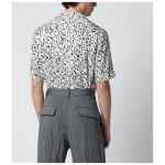 Dries Van Noten viscose shirt with black and ecru pattern, featuring bowling collar, front button closure, short sleeves and one chest patch pocket.