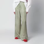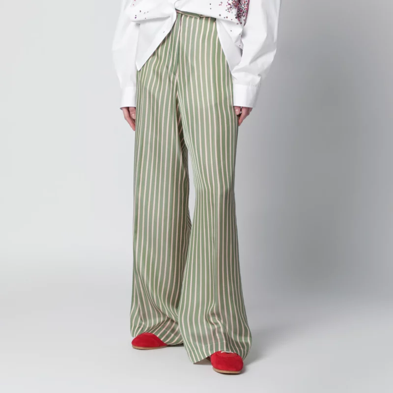 Dries Van Noten Wide-leg green striped trousers
