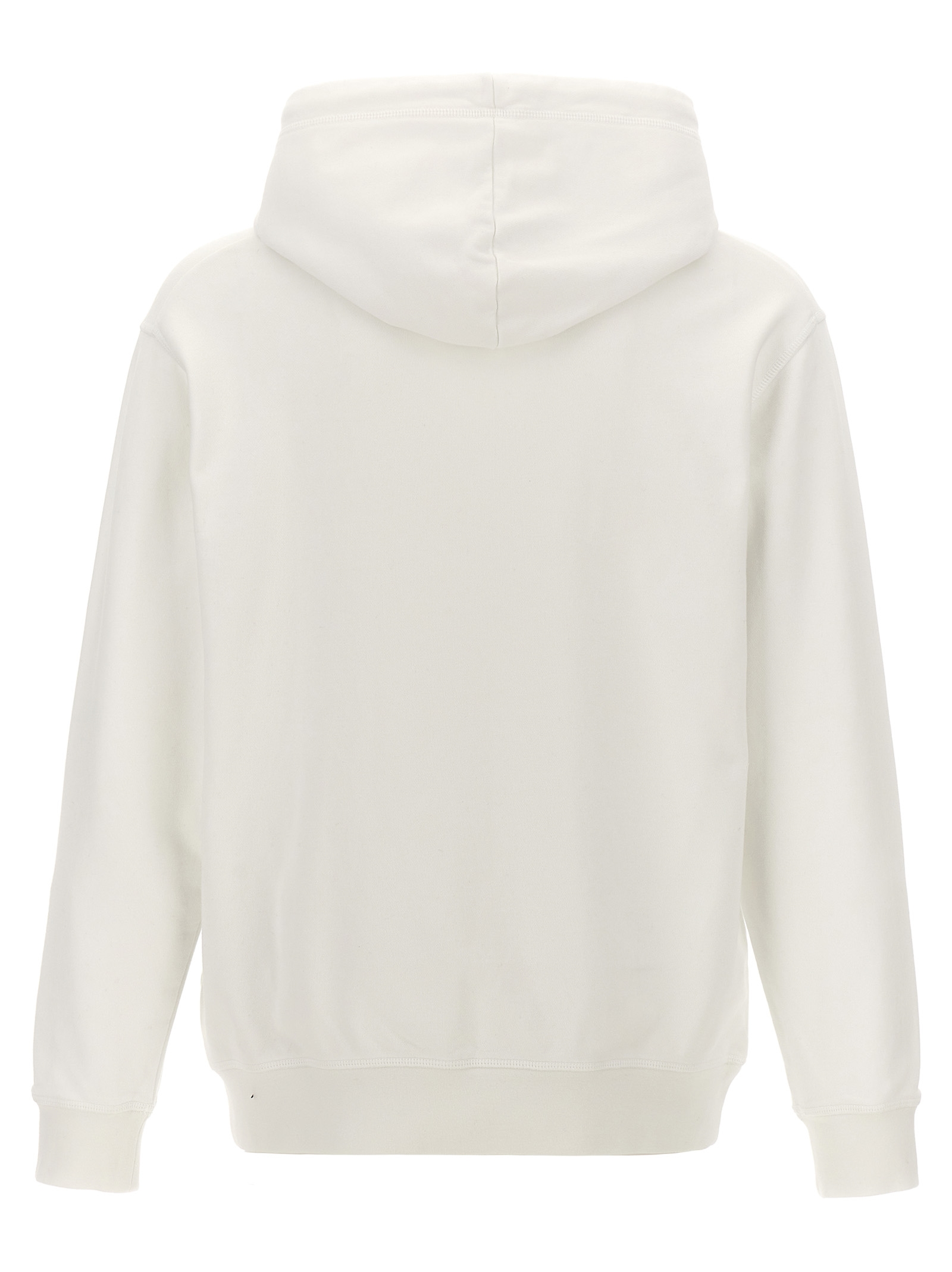 Cotton hoodie with front logo print, long cuffed sleeves.