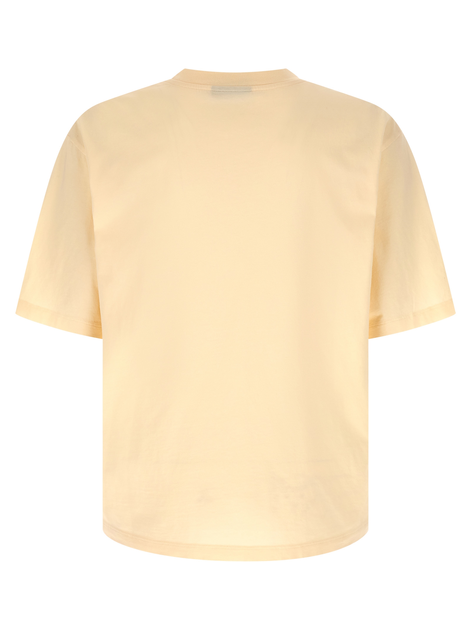 Cotton jersey T-shirt, front print, crew neck, side slits, asymmetric hem.