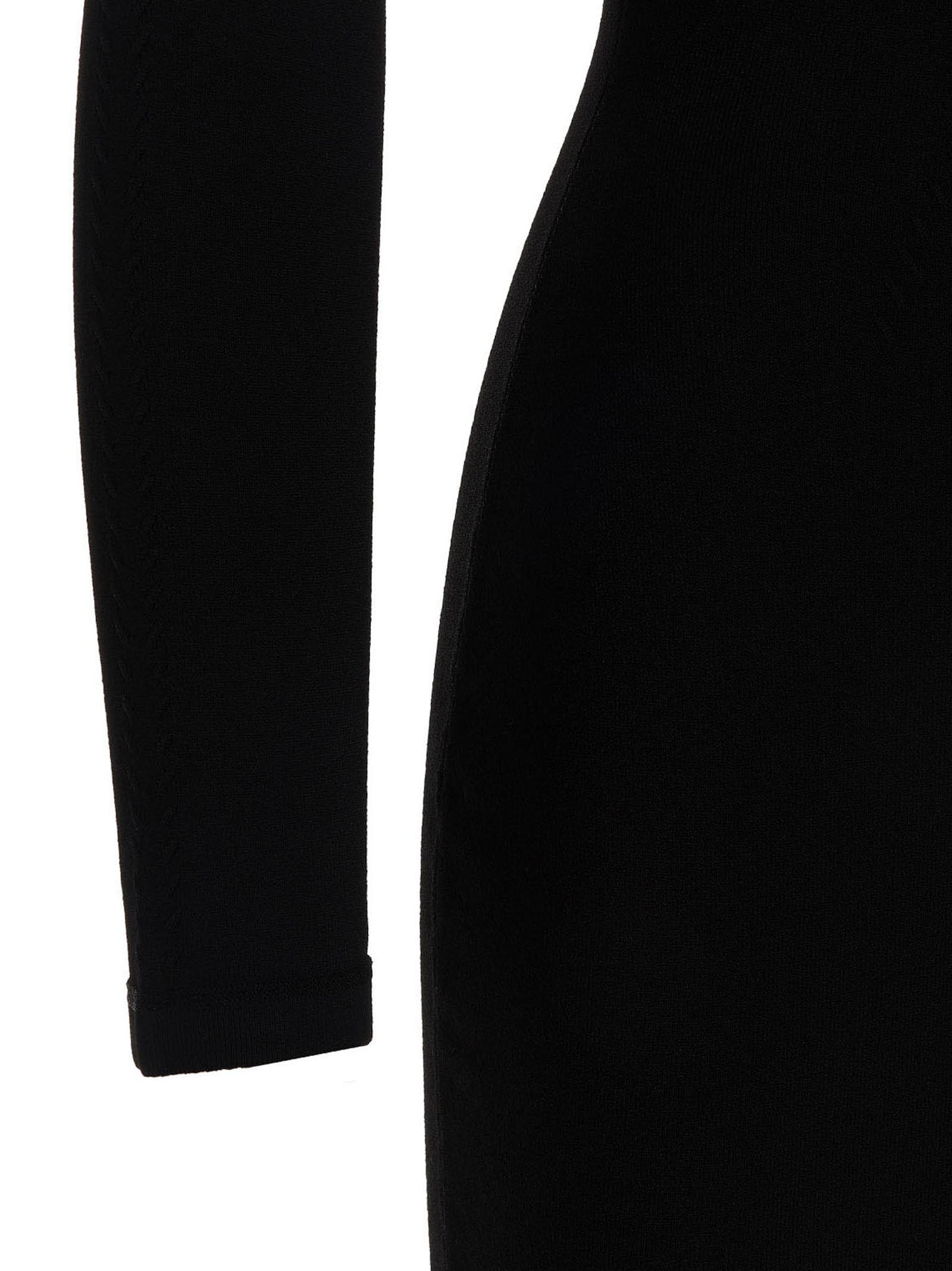 Viscose blend dress with ribbed bust detail, squared neckline and long sleeves.