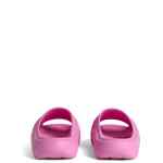pink embossed logo to the front maple leaf motif open toe slip-on style moulded footbed flat rubber sole Rubber slides