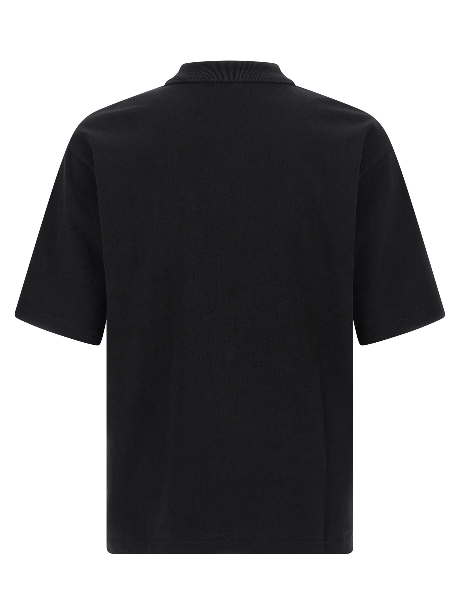 Smooth cotton jersey polo shirt with contrast ‘Dsquared2 Signature’ embroidery on the front, collar and buttons, short sleeves with dropped shoulders, side slits, and asymmetrical hem.