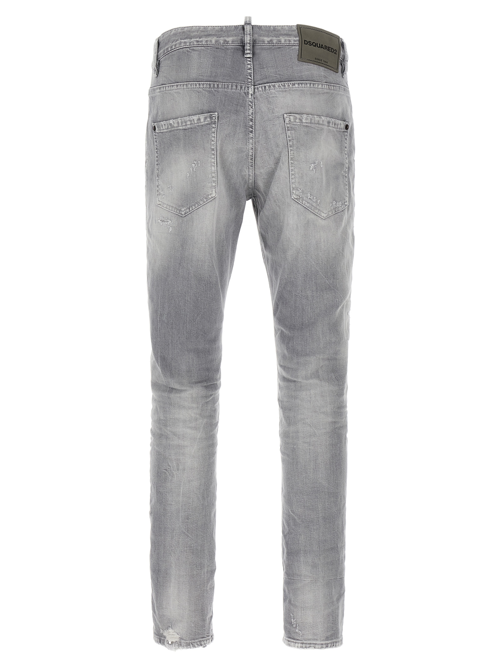 ‘Skater’ cotton denim jeans with used-effect details and rips, front button closure, five pockets, and leather logo label at the back.