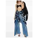 light blue cotton frayed hem classid five pockets rear logo patch sash detail Layered denim jeans