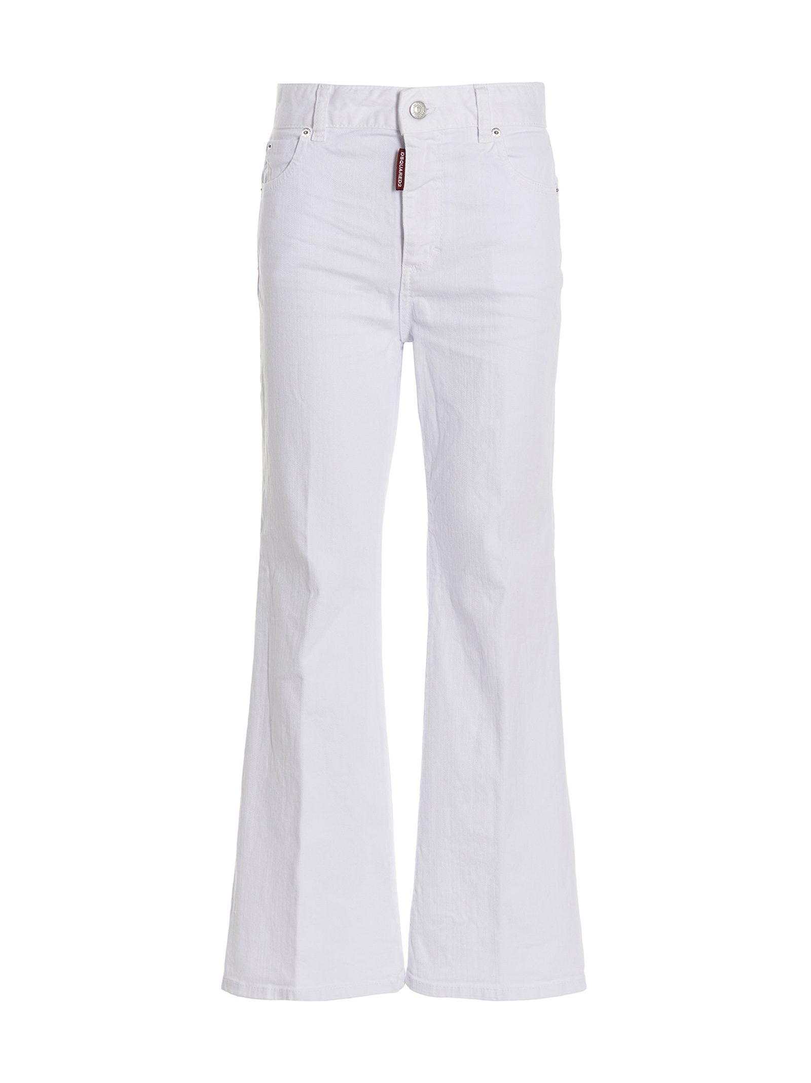 ‘Super Flared Cropped’ cotton denim jeans with zip and button closure, five pockets, leather logo tag, flared leg.