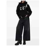 black panelled design drawstring hood logo print long sleeves asymmetric hem cotton Cotton cropped hoodie