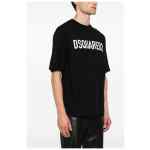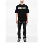 black cotton soft jersey round neck logo print to the front short sleeves straight hem Logo cotton t-shirt