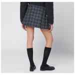 Mini skirt by Durazzi Milano in mixed wool with a black and white check pattern, characterized by a kilt design with adjustable straps on the sides, a hem with small fringes, and side pleating.