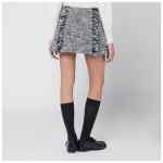 Mini skirt by Durazzi Milano in mixed wool with a black and white pattern, characterized by fringe details on the front and back and a side zip closure.
