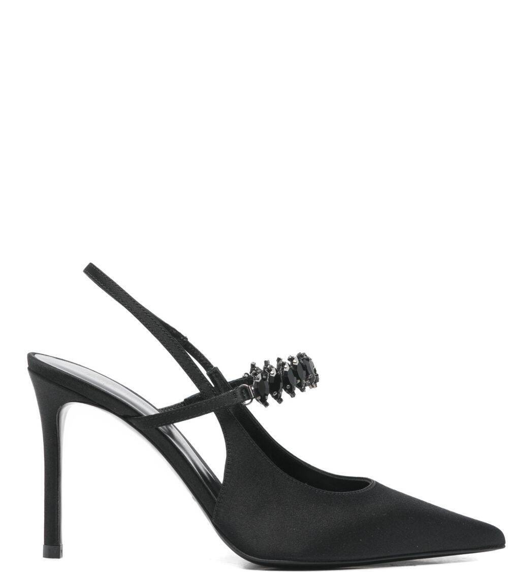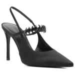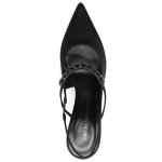 black pointed toe embellished strap stiletto heel slingback strap Silk satin slingback pumps