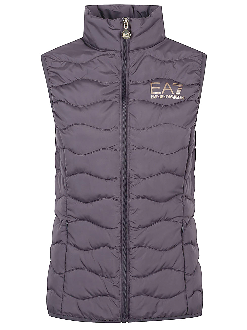 Eco-down padding, water-repellent and windproof fabric, quilted model with wave effect, zip closure, two side welt pockets, contrasting EA7 logo on the chest, resealable model with dust bag. Logo down vest
