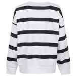 Crew-neck sweatshirt with long sleeves, striped, white and blue, EA7 logo in red, straight hem. Cotton crewneck sweatshirt