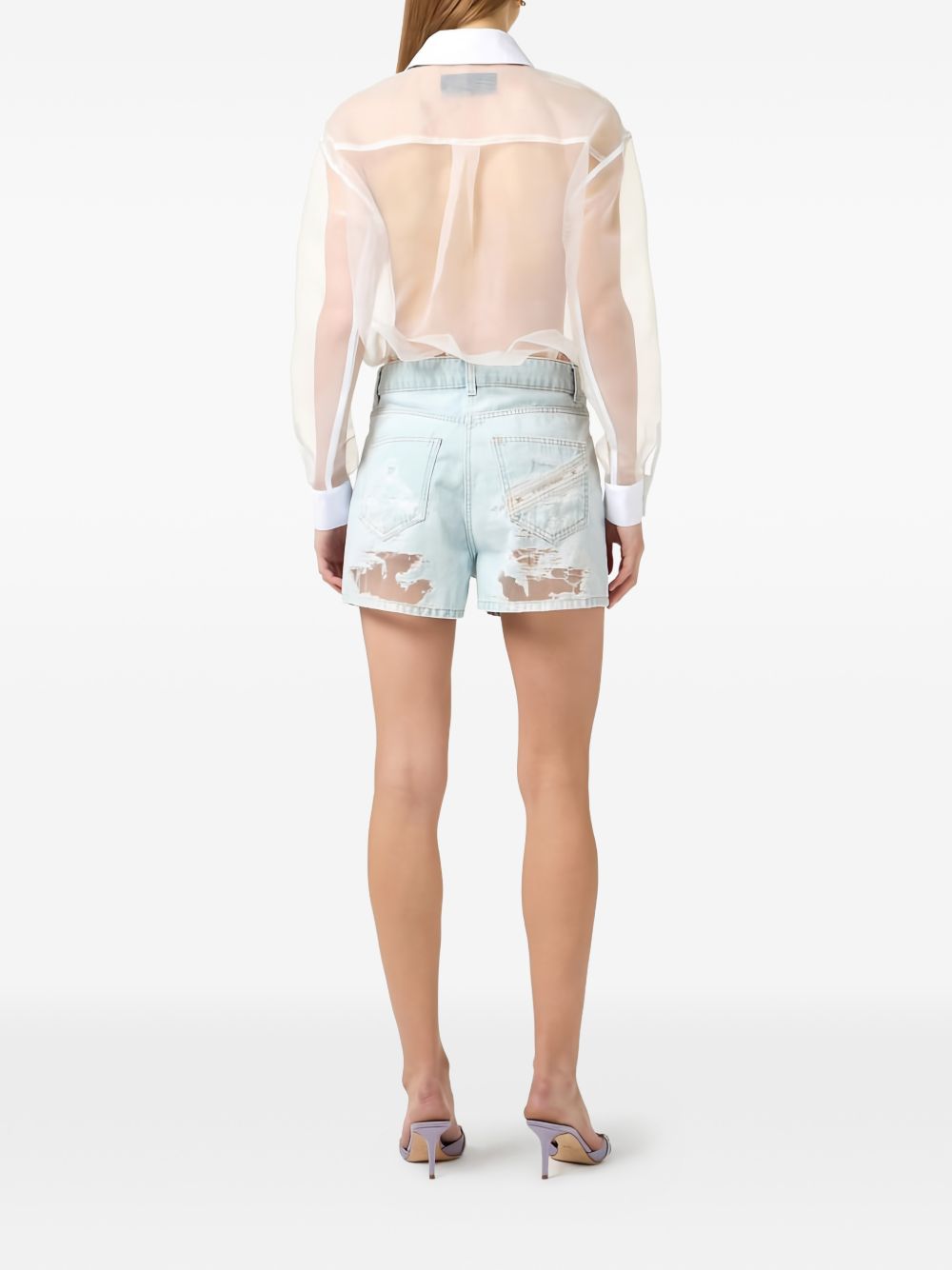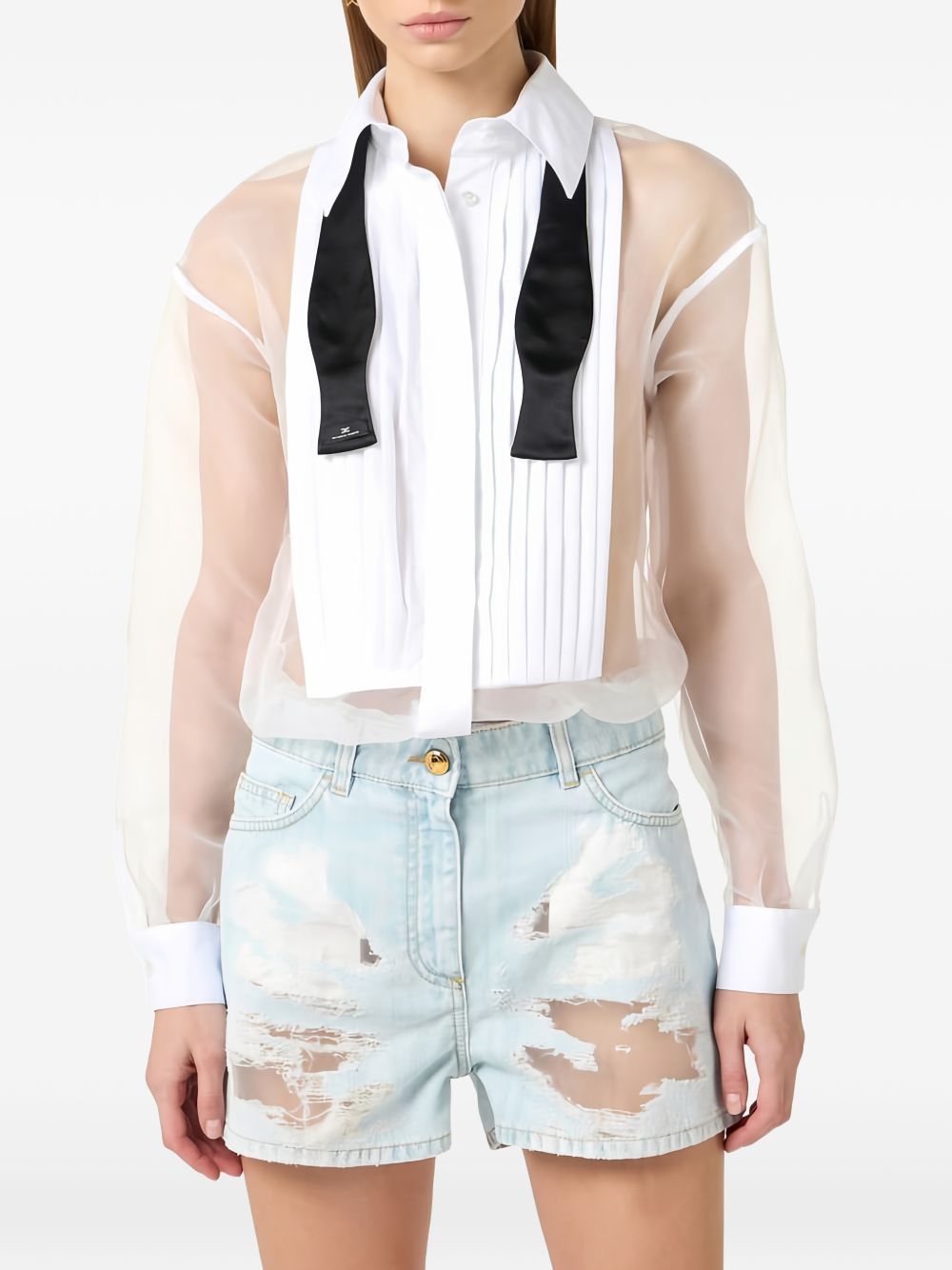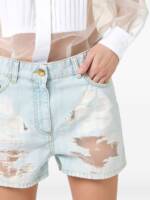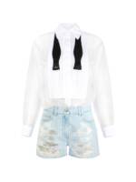 ivory/light blue bib distressed effect bow tie regular fit back pocket ribbon Cotton jumpsuit. Size and Fit –  .