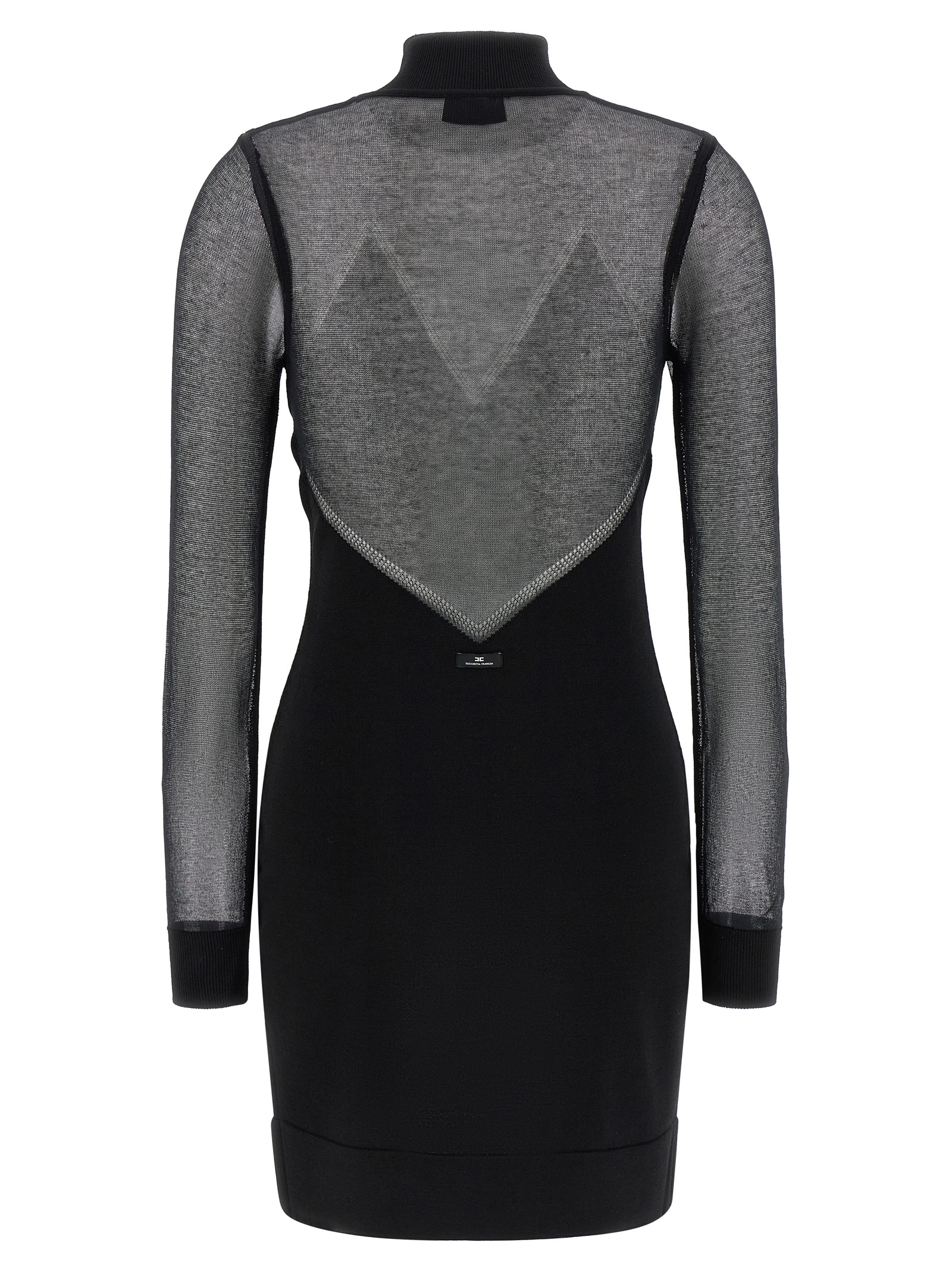 Mini dress in viscose and stretch cotton blend with superior transparencies, high neck, long cuffed sleeves, and band on the hem.