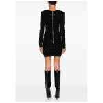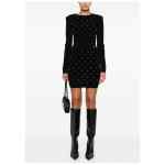 black gold embellishments quilted effect long sleeves round neck Knitted mini dress