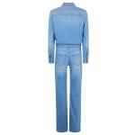 blue front button-fastening chest-pocket logo-embroidery long-sleeves gold-tone buttons Denim cotton jumpsuit