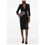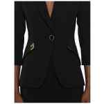black three-quarter sleeves gold-tone hardware single breasted cut-out details V-neck Single-breasted blazer jacket