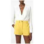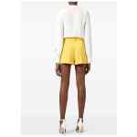 white shirt collar draped front opening structured shoulders long sleeves logo buttons at cuffs Bodysuit