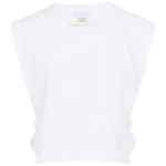 white crew neck knot detail sleeveless shoulder pads gold-tone detail Cotton top