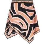 Mini skirt in ‘labirinto’ print silk twill, Flared silhouette, Side zip closure, Asymmetrical hem.
