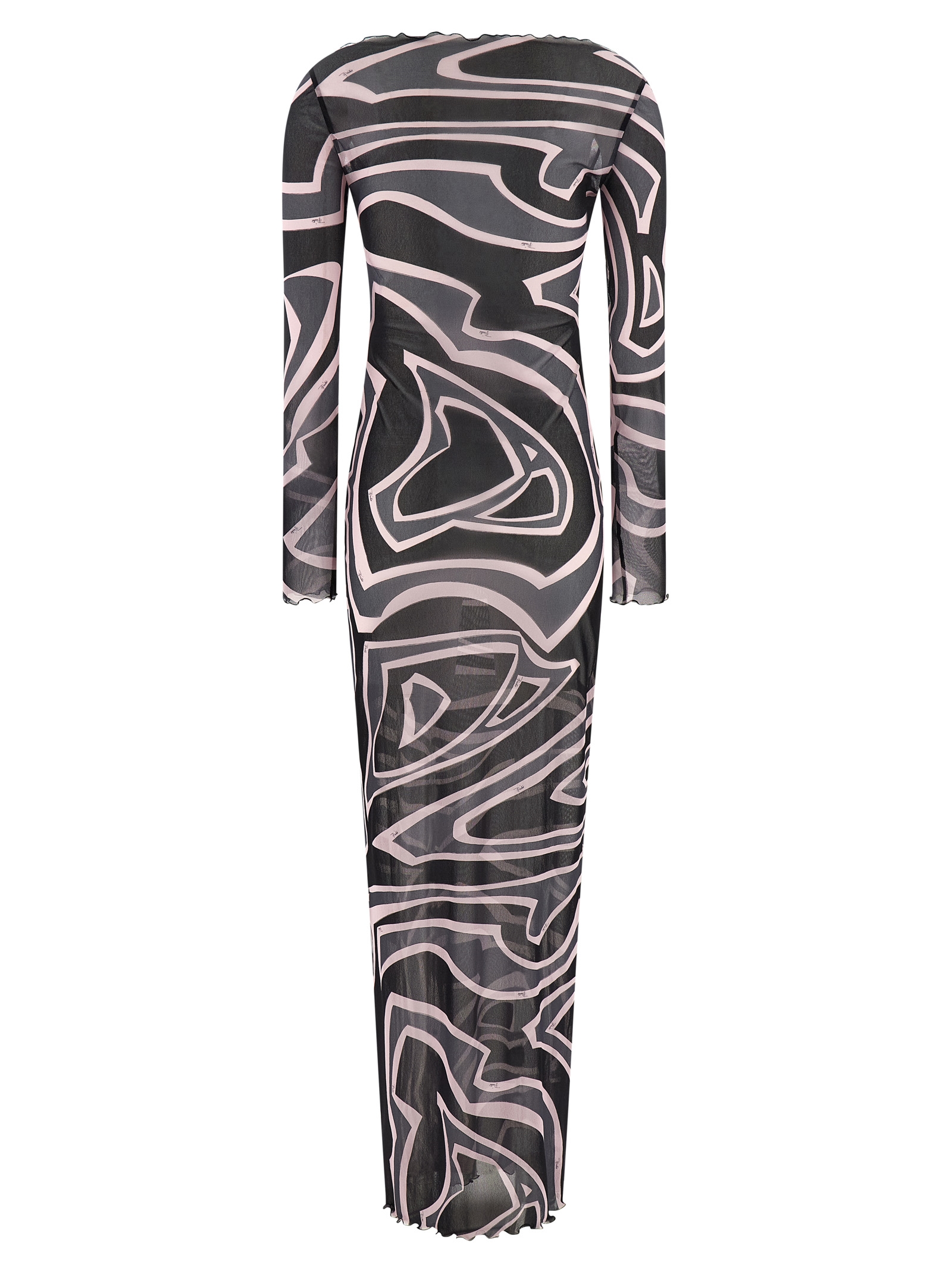 Long dress in semi-transparent stretch tulle with marble print, boat neck, long sleeves._x000D_