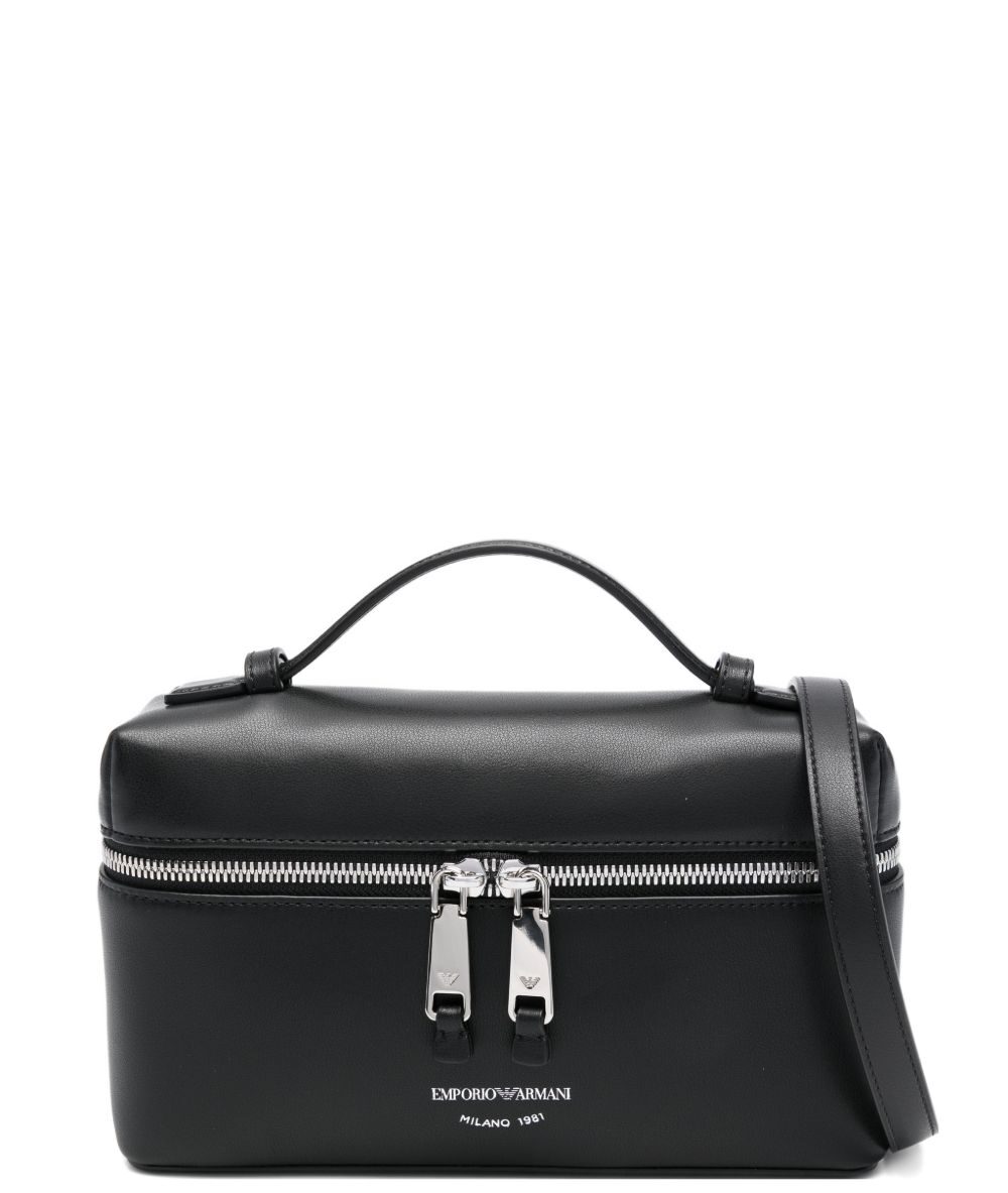 black top handle zip fastening shoulder strap rectangular shape metal hardware This piece comes complete with a protective dust bag. Leather vanity case