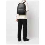 black recycled leather logo print to the front silver-tone hardware two padded adjustable shoulder straps single top handle all-around zip fastening front zip-fastening pocket main compartment full lining Logo backpack