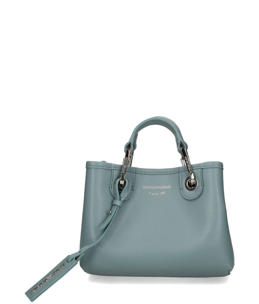 blue top handle detachable strap chain detail silver-tone hardware grained effect MyEA xsmall shopping bag