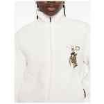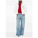 off white textured knit appliqué zip fastening ribbed hem ribbed cuffs Tweed blouson jacket