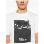 white graphic print round neck short sleeves Printed cotton t-shirt