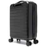 black combination lock all-around zip fastening tonal logo plaque single top handle single flat side handle single extendable handle four wheels front zip-fastening pocket partitioned compartment Cabin trolley