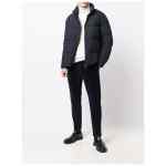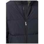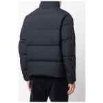 navy blue down-feather filling band collar padded design front zip fastening long sleeves two front welt pockets Nylon short down jacket