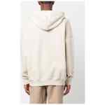 long sleeve hoodie from EMPORIO ARMANI featuring light beige, cotton blend, embroidered logo at the chest, drawstring hood, long sleeves, elasticated cuffs and elasticated hem. Logo cotton hoodie